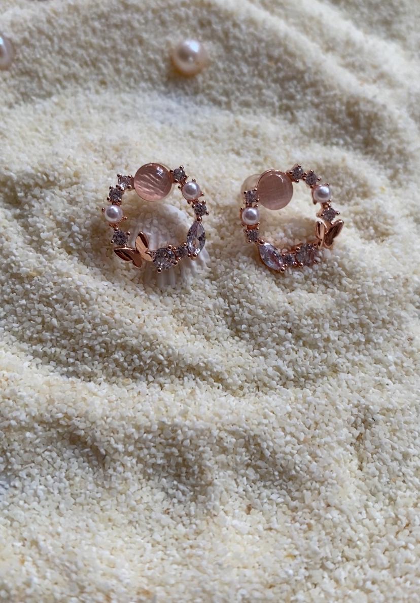 Design: Circular hoop design adorned with pearls, crystals, and a butterfly charm