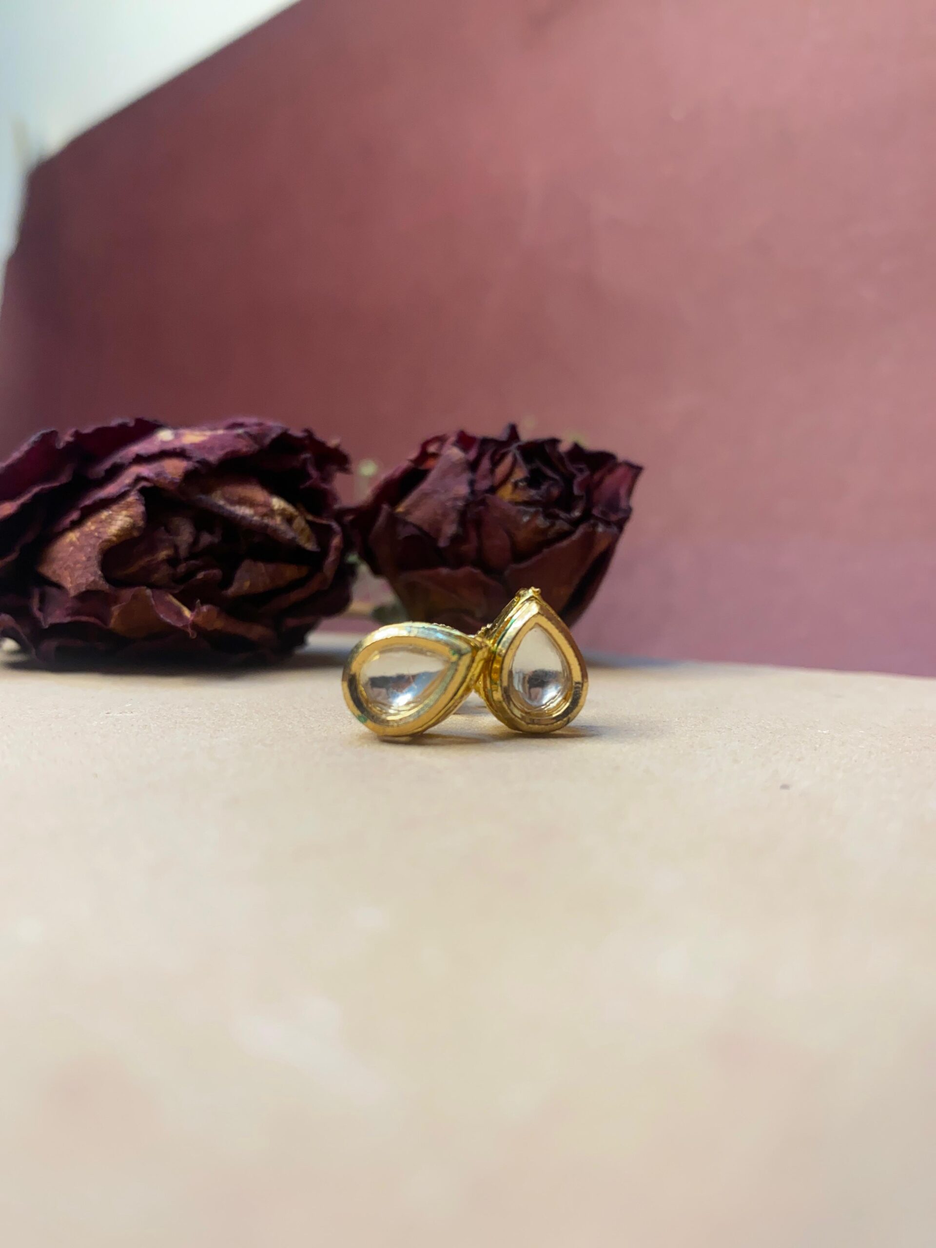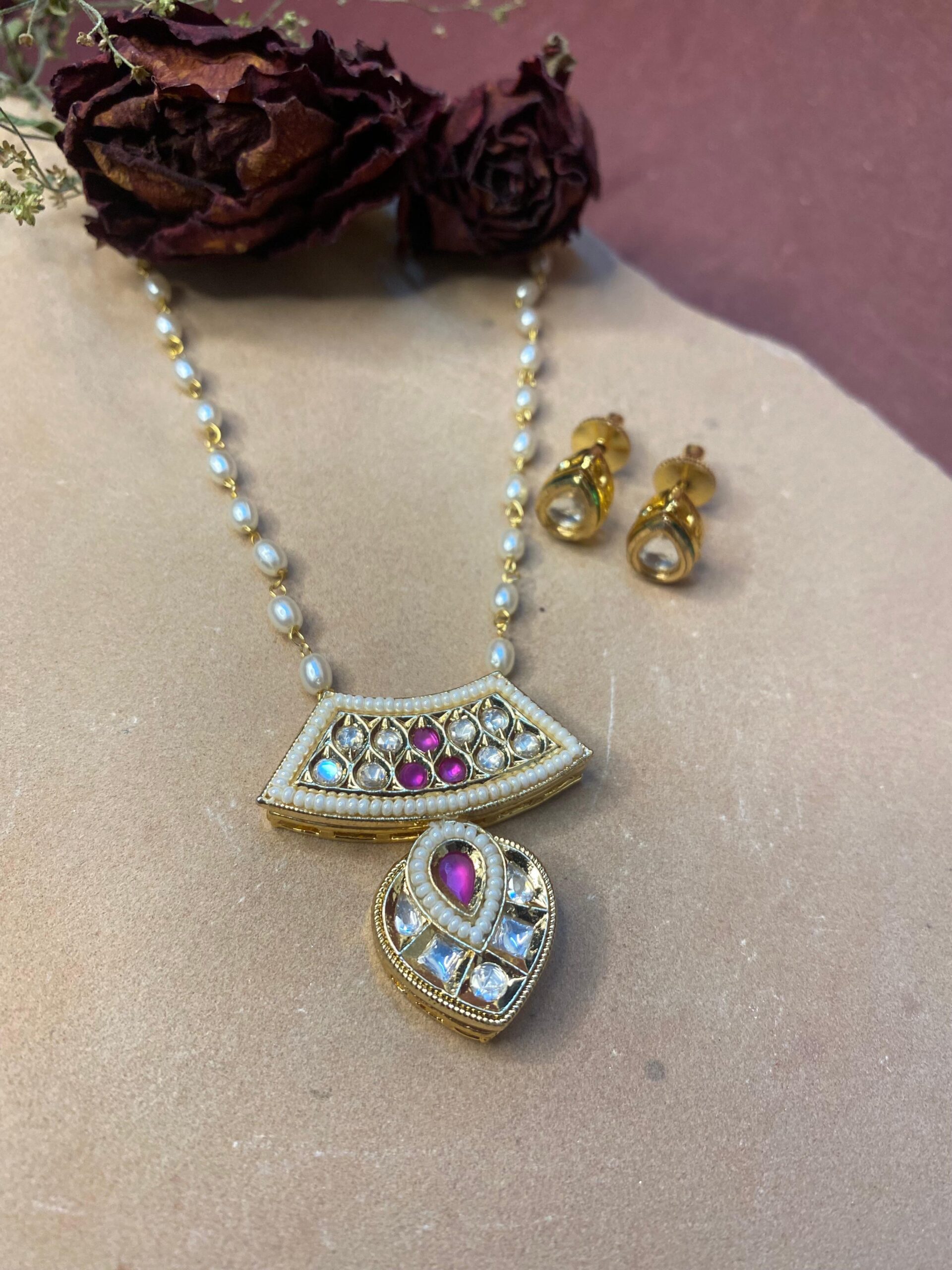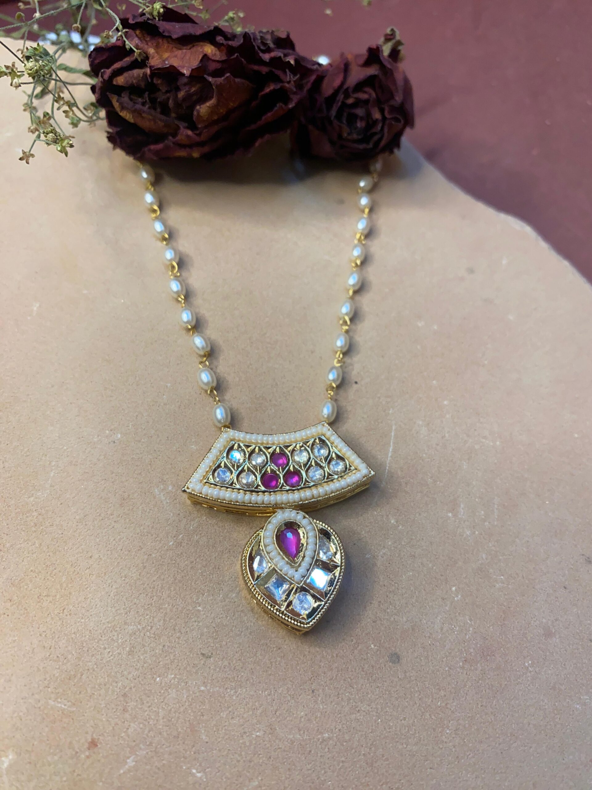 Embellished with ruby-colored stones and sparkling kundan-style crystals