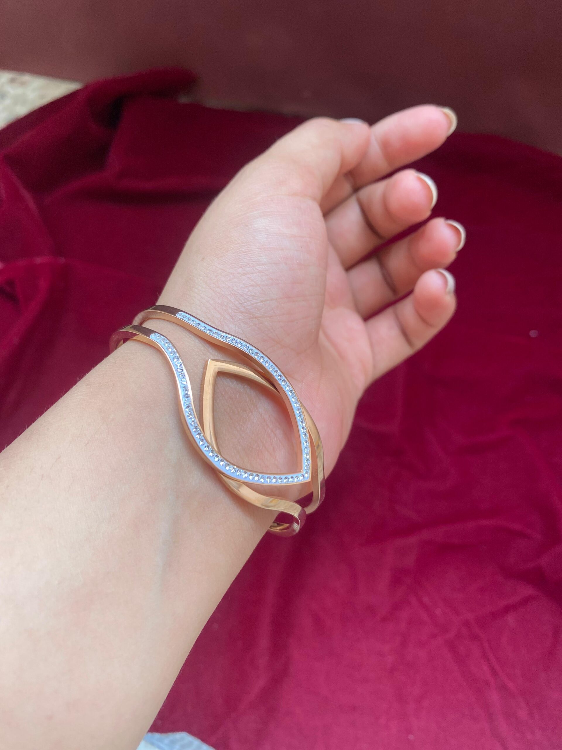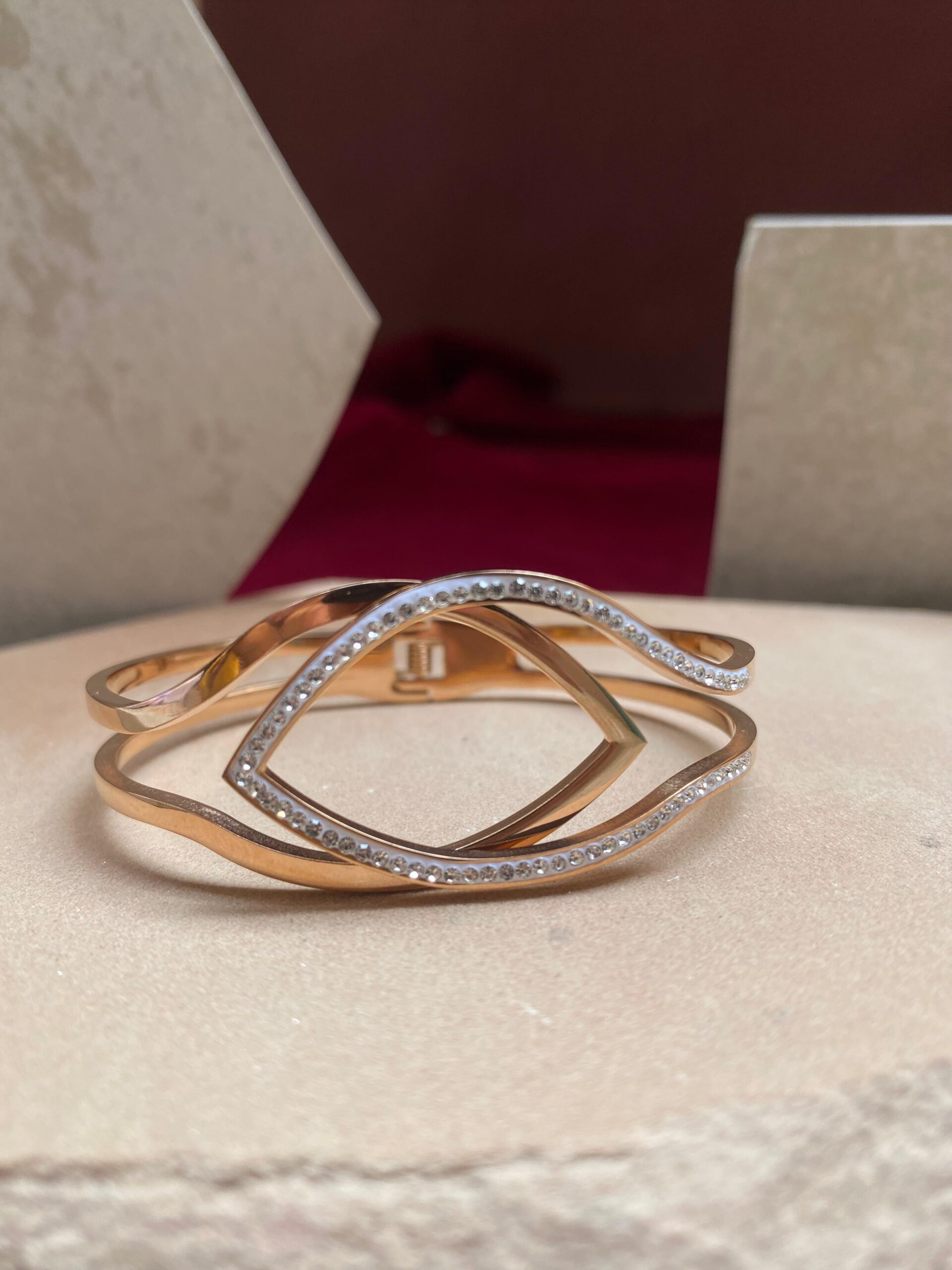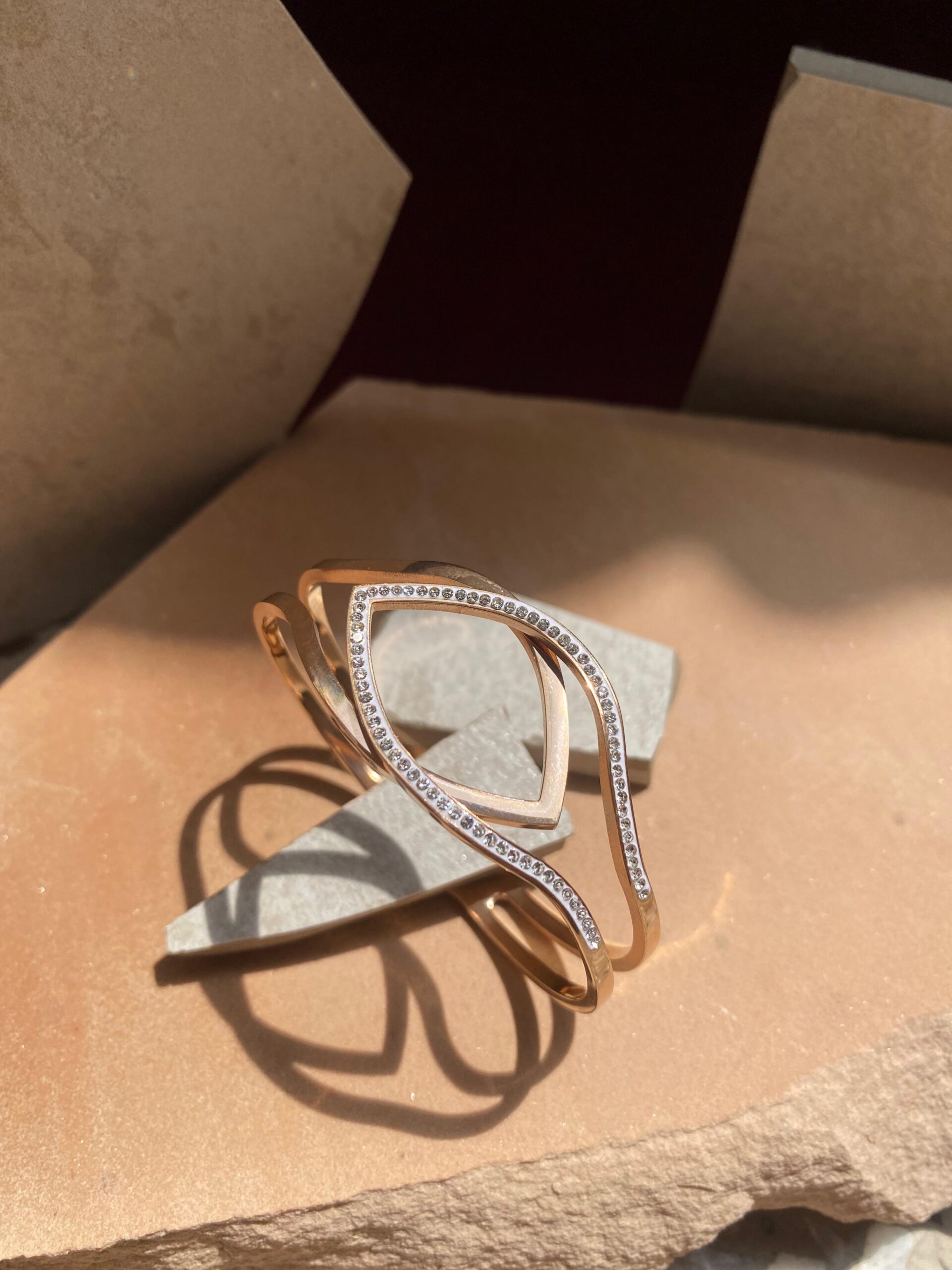 Sculptural Open Design: Contemporary silhouette with flowing lines and a pointed centerpiece.